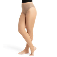 Stirrup Tight by Capezio. Tights are semi-opaque with excellent support and durability. Suitable for all types of dance. Hold and Stretch tights feature a comfortable 1" plush waistband and dyed-to-match Coolmax gusset for cool, dry comfort. Fabric: 88% nylon 12% lycra spandex.
