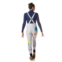Paint the dance floor with this painters unitard featuring a dye sublimated design. Full front lining with center back zipper. Polyester, Spandex.