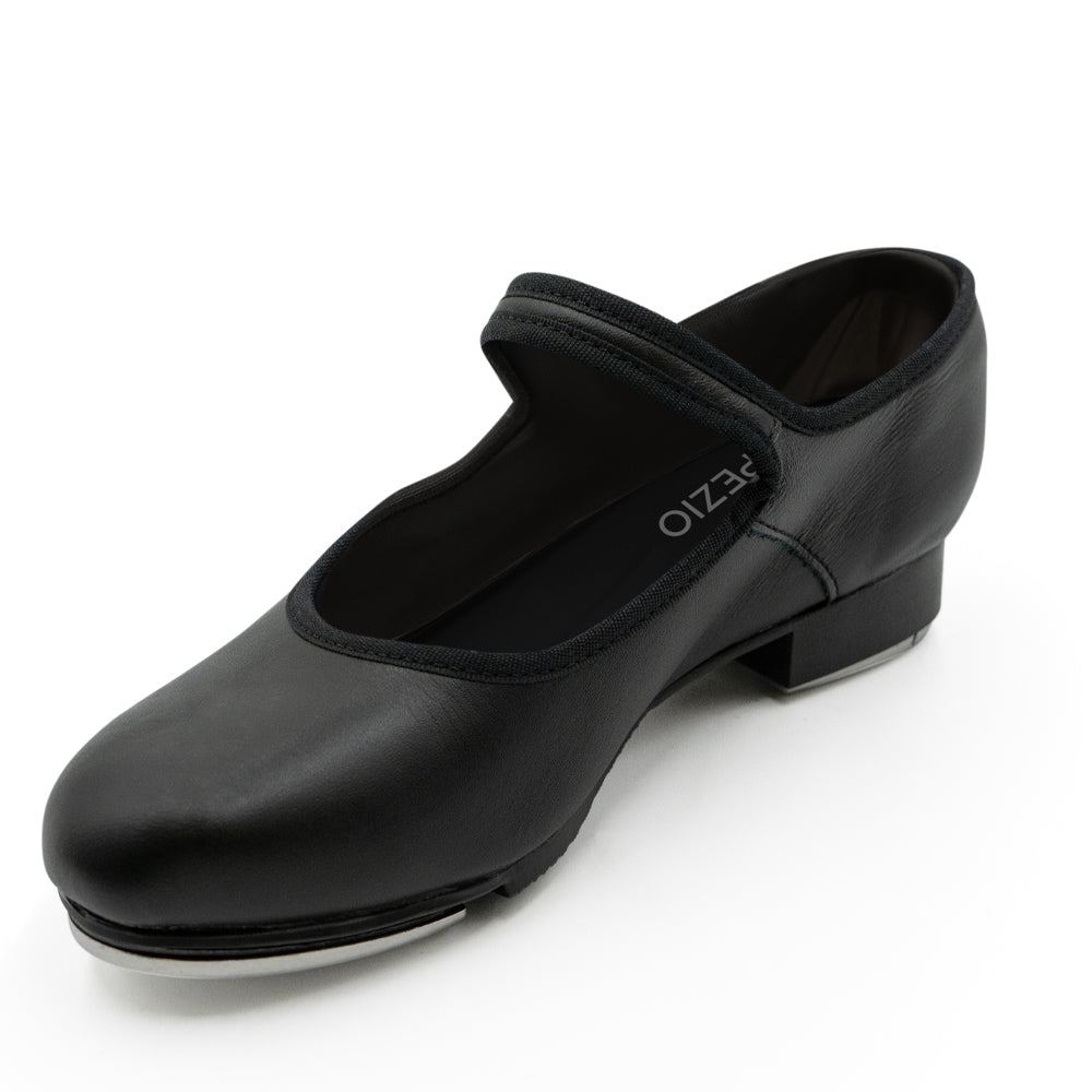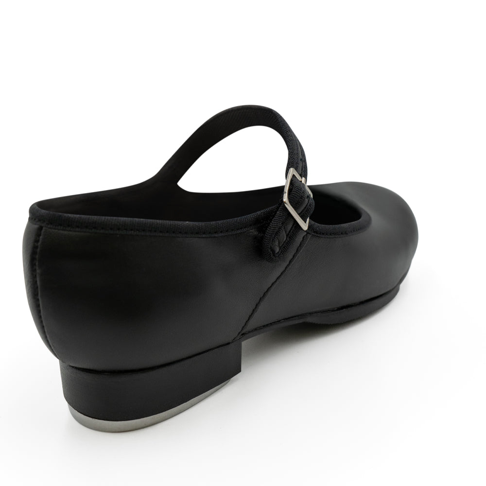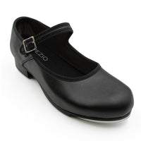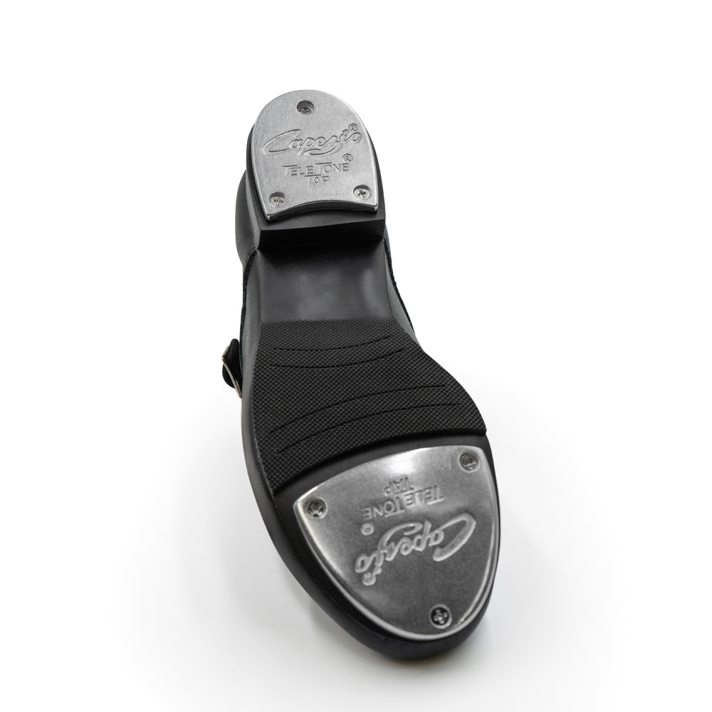 Capezio Mary Jane tap shoe features TeleTone taps for all sizes! Micro-sole - rubber/fiber compostion provides flexibility, comfort and longer wear. Features scored rubber sole patch, cushioned latex foam insole, non-slip heel counter. Fitting: begin with street shoe.