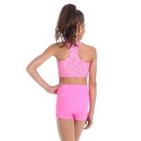 The Emoji Crop Top will be your new staple item in your wardrobe. The pink racerback crop top with the Heart Eyes Emoji design is sure to help you stand out in a crowd. Front fully lined. Polyester, Spandex.