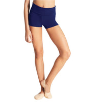 This Team Basic Fold-Over Boyshort features a thick 6" waistband that can be worn as is or folded over. Band on the leg to prevent gapping. 1 1/4" inseam. 80% Nyon, 20% Spandex