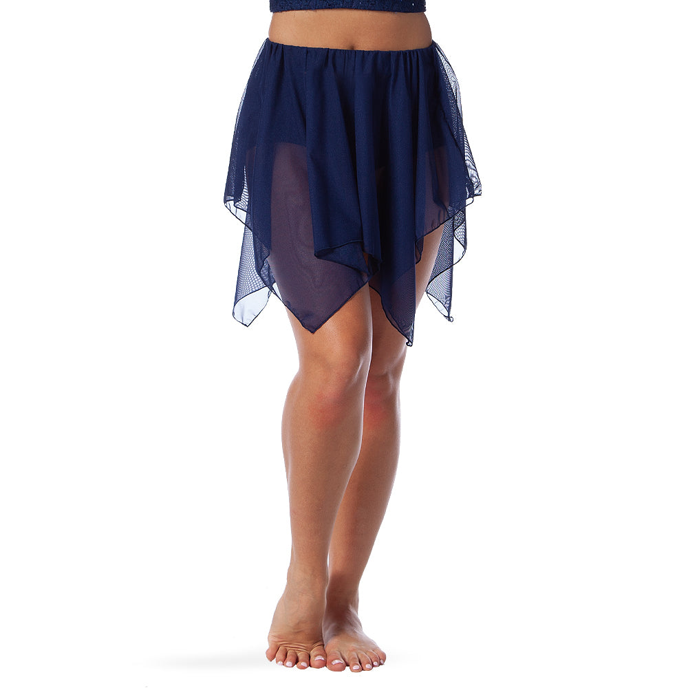 The Handkerchief Mesh Skirt is a romantic mesh skirt that has a handkerchief hemline, and is the perfect layering piece for any costume! Elastic waistband. Polyester, Spandex.