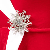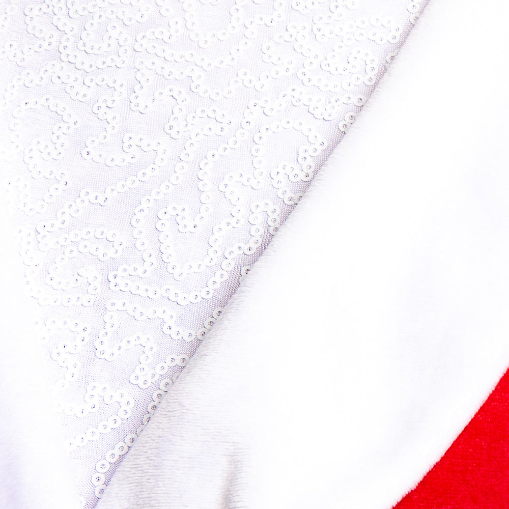 This luxurious and festive velvet dress is perfect for your next holiday performance. The luxurious, red velvet dress includes a puff shoulder long sleeve accented with white velvet cuffs. A white velvet shawl collar bodice overlays a gorgeous white sequin bodice. The skirt opens up at the side front for a flattering look that is accented with a brooch at the waistline. Center back zipper closure.