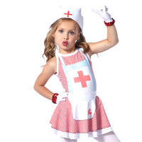 Perfect for any themed routine, the Nurse Biketard from the Alexandra Collection of Just For Kix features realistic dye-sublimated details ranging from the Red Cross on the front to the candy striping and straps on the back!