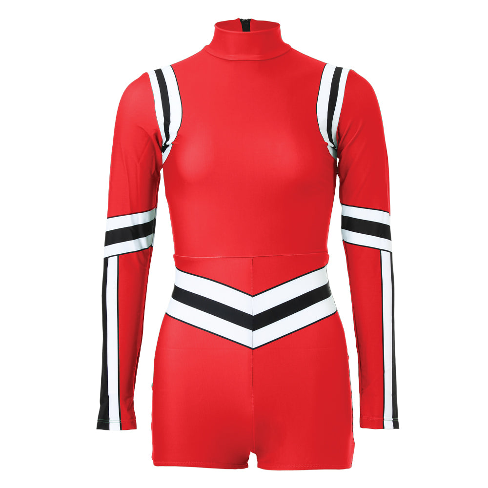 Unity is strength, when there is teamwork and collaboration in the mix! Kick up your unity with the Cheer Look Inspired Team Biketard! Mock neck long sleeve biketard that is front lined with a center back zipper. Made in the USA. Polyester, Spandex.