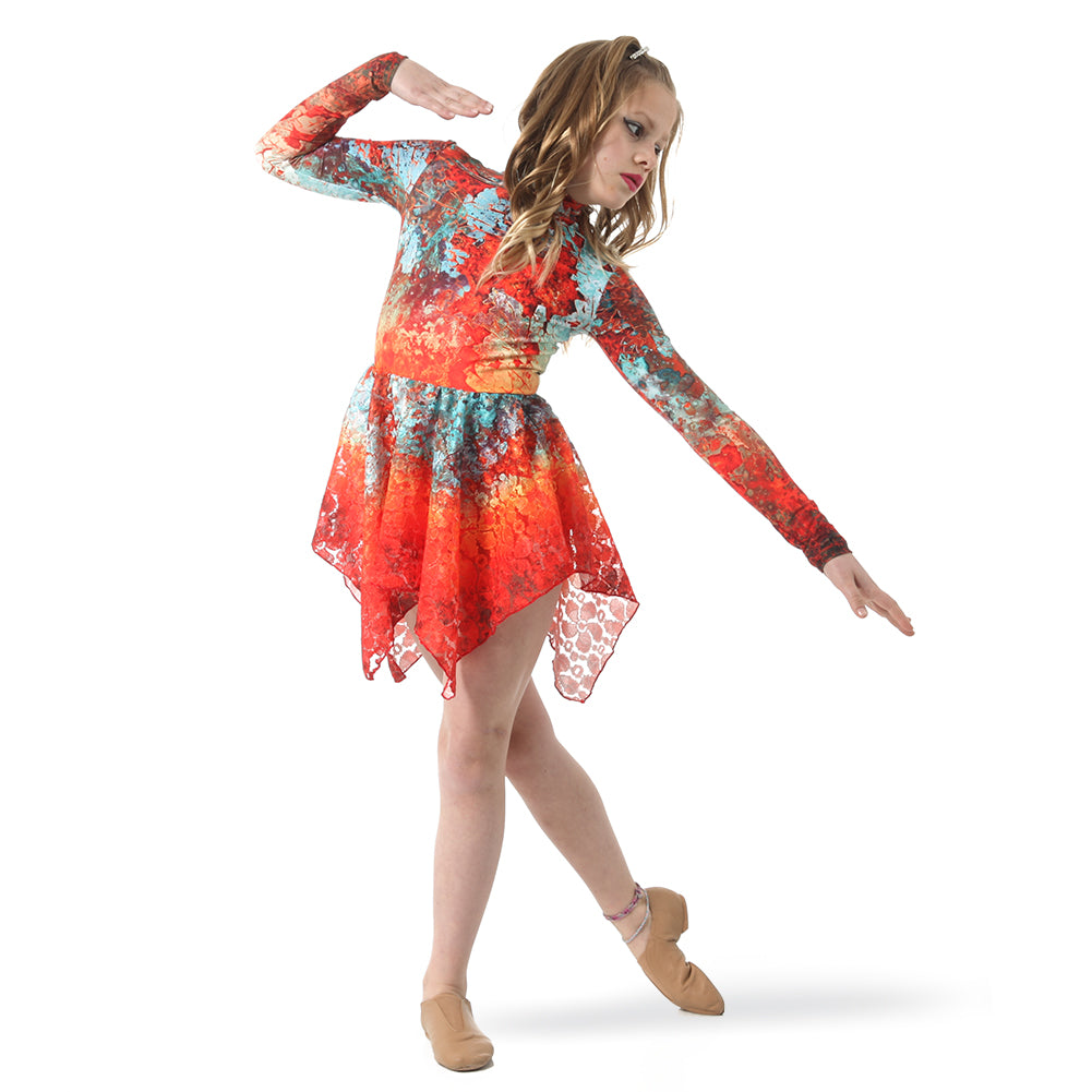 Pair with red leggings for a kick/pom routine, or the Boho Rust Handkerchief Skirt for a lyrical routine. Sold separately.