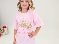 Spread holiday cheer in this Nutcracker-inspired oversized t-shirt. The Visions of Sugar Plums Dancer In Their Heads graphic design is made with a screenprint in matte and glitter ink. Oversized fit. 85% Polyester, 15% Spandex.