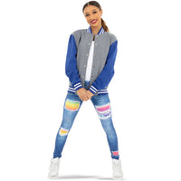 Get ready to stay classy and trendy with our Varsity Letterman Jacket. This long-sleeved button-down jacket is designed with a striped rib-knit trim at the neckline, bodice, and sleeve hem, and features color-blocked sleeves and body for a fashionable and sporty look.