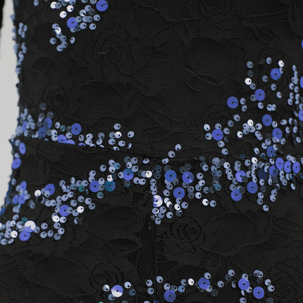 With an all-over lace construction adorned with contrasting sequins, the Lace Sequin Biketard from the Alexandra Collection of Just For Kix is what your dancers need to stand out from the competition and shimmer under any stage lights! Biketard consists of set-in long sleeves, circle neckline, fully lined with black tricot for full coverage. Center back zipper. Polyester, Spandex Construction.