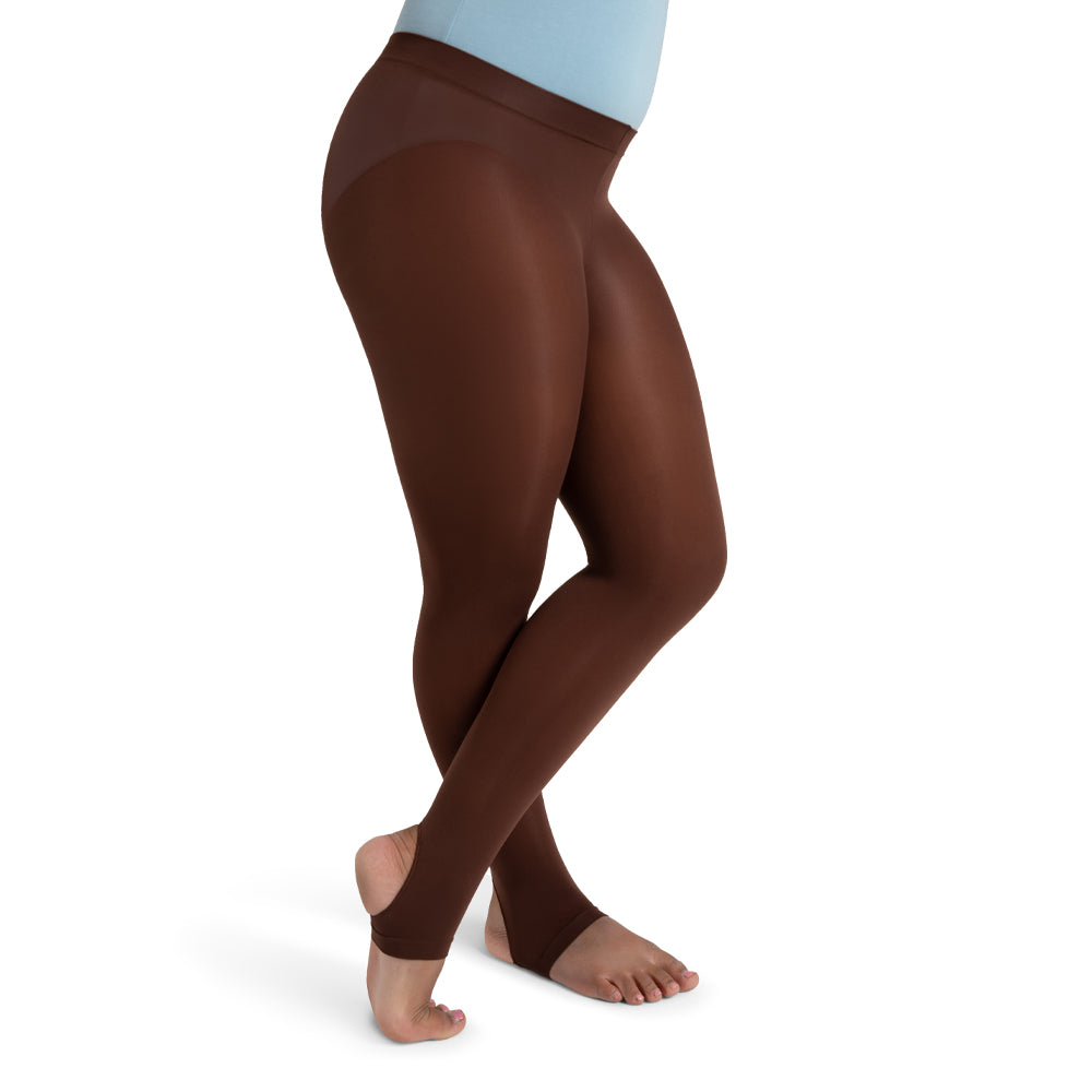 , for example, cover the majority of the body, providing a seamless look between top and bottom. They allow for the dancer's entire form to work as one and make great practice and performance garb. Stirrup tights, on the other hand, are designed to provide a bit more "stretch," in a manner of speaking. The bottoms of these tights have a cut-out for the heel, allowing the legs of the tights to form a "stirrup" around the foot. They provide a great deal of support and durability, aiding your movements as your glide across the dance floor. Our selection doesn't end there. We also have footless and convertible tights, among others, available in multiple color options. No matter what your need, you're more than likely to find what you're looking for with us. Feel free to browse everything that we have on offer, and reach out if you have a question about finding a particular style.