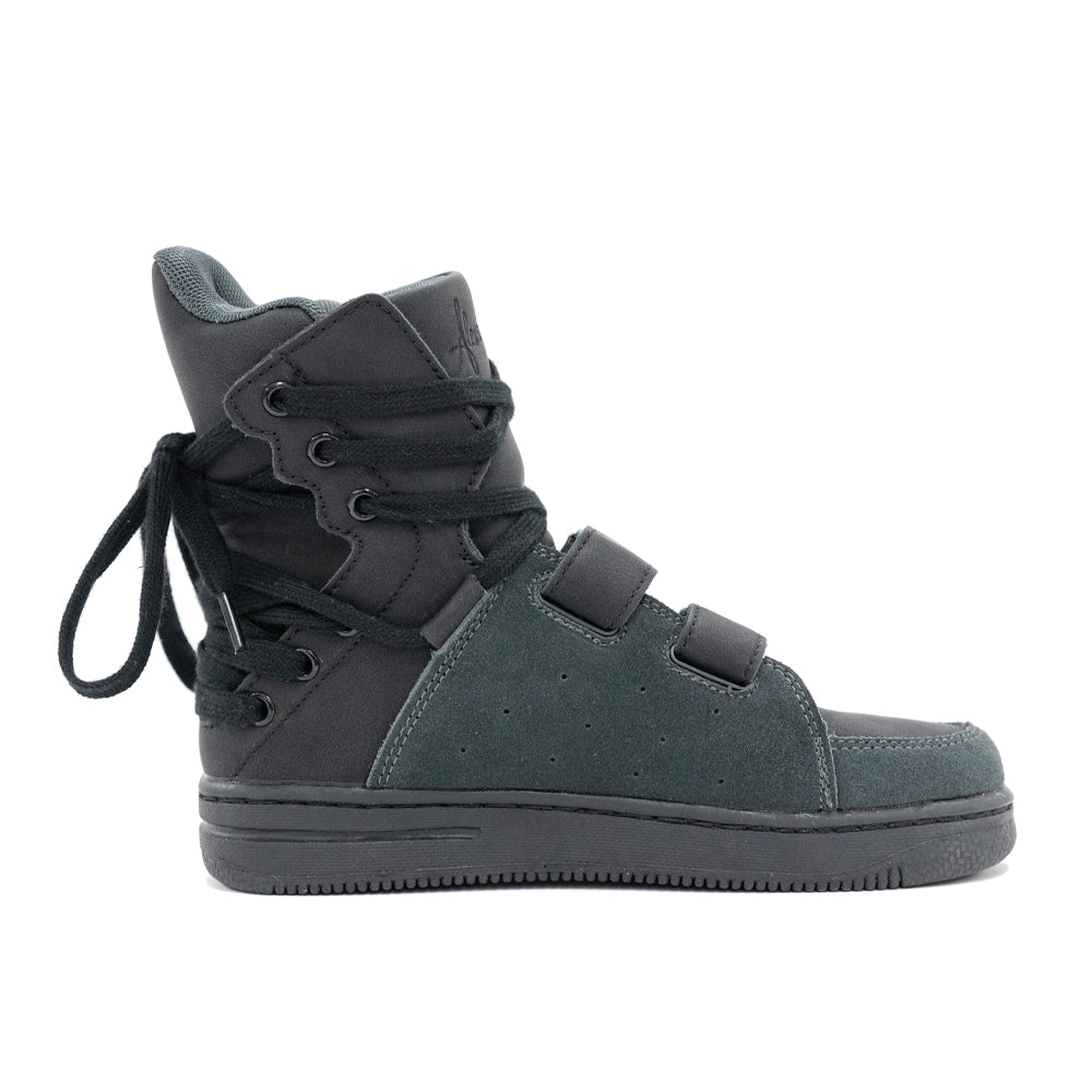 A unique lace up back design allows for added creativity by lacing in various ways, showcasing your style. These Hip Hop Sneakers also feature two velcro straps, durable vulcanized rubber soles, and a stylish leather design.