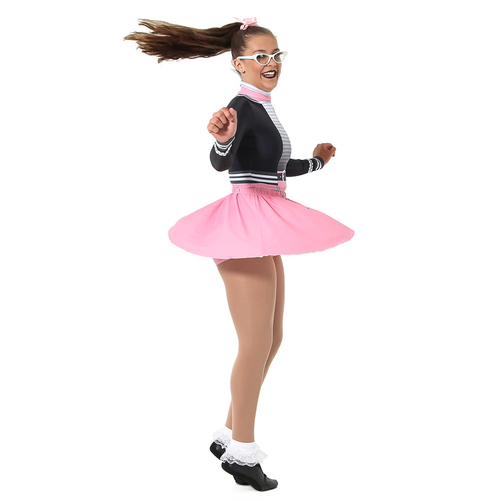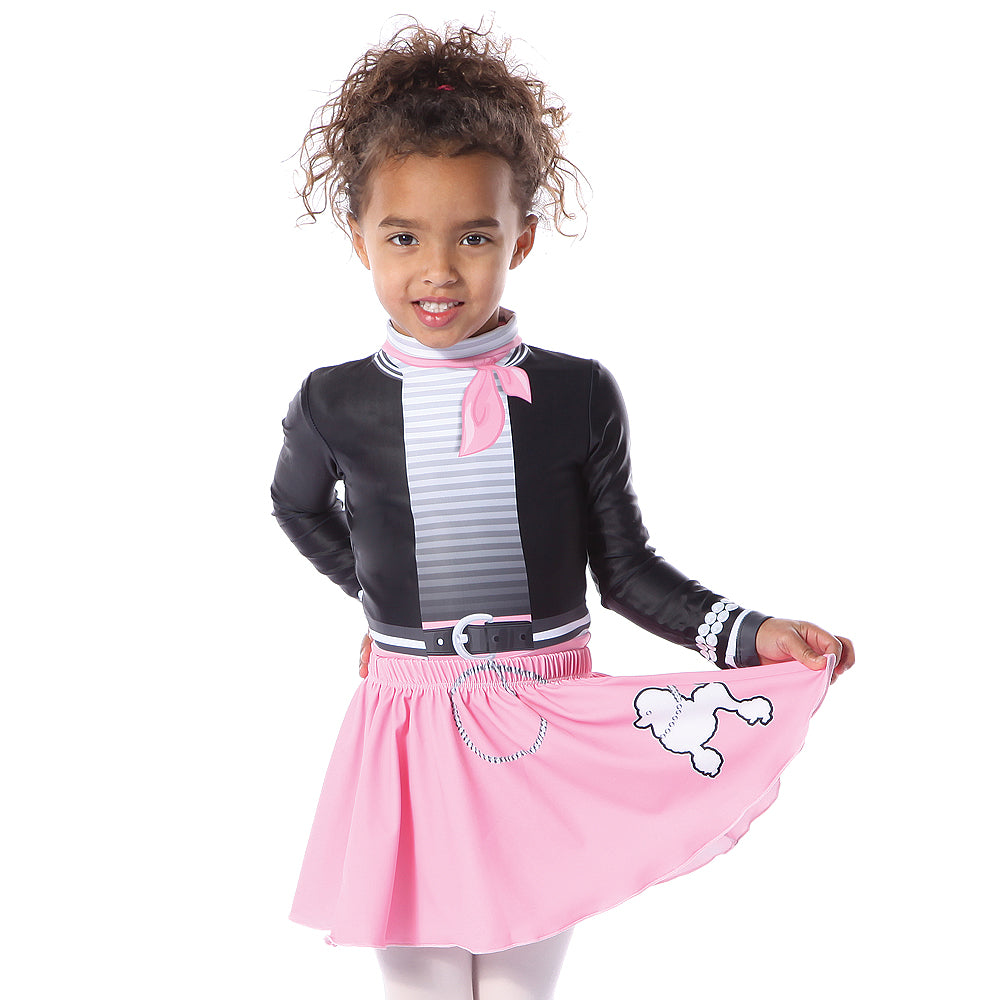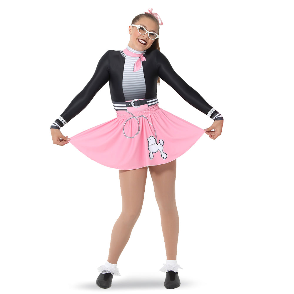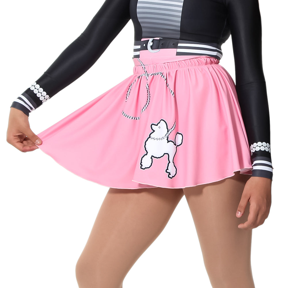 Wearing this skirt will surely complete your '50s inspired costume. Dye-sublimated design includes a sequin pearl leashed classic Poodle. Elastic waistband. Polyester, Spandex. ( -Skirt Only, Biketard Sold Separately- )