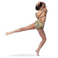 The Baroque Keyhole Tank Leotard features a statement keyhole in the front, two asymmetrical supporting back straps and a Baroque-inspired dye-sublimated design that will never peel or crack. Polyester, Spandex.