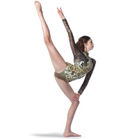 Reign the stage in this Baroque Raglan Mesh Leotard. This mock neck leotard features a Baroque-inspired dye-sublimated design and raglan mesh sleeves. Front lined, center back zipper. Polyester, Spandex.Ā