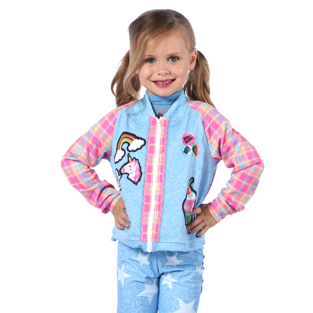Be best dressed with the Boomerang Bomber Jacket. This jacket features pink madras plaid pattern sleeves and a light denim blue body. All details are Dye-Sublimated. Polyester. Made in the USA.