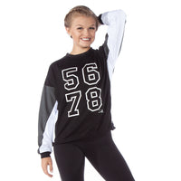 5,6,7,8 Colorblock Crewneck sweatshirt features one zipper pocket and one slit pocket at the front. Dropped shoulder long sleeves, ribbed neckline and hem. 70% Polyester, 30% Cotton.