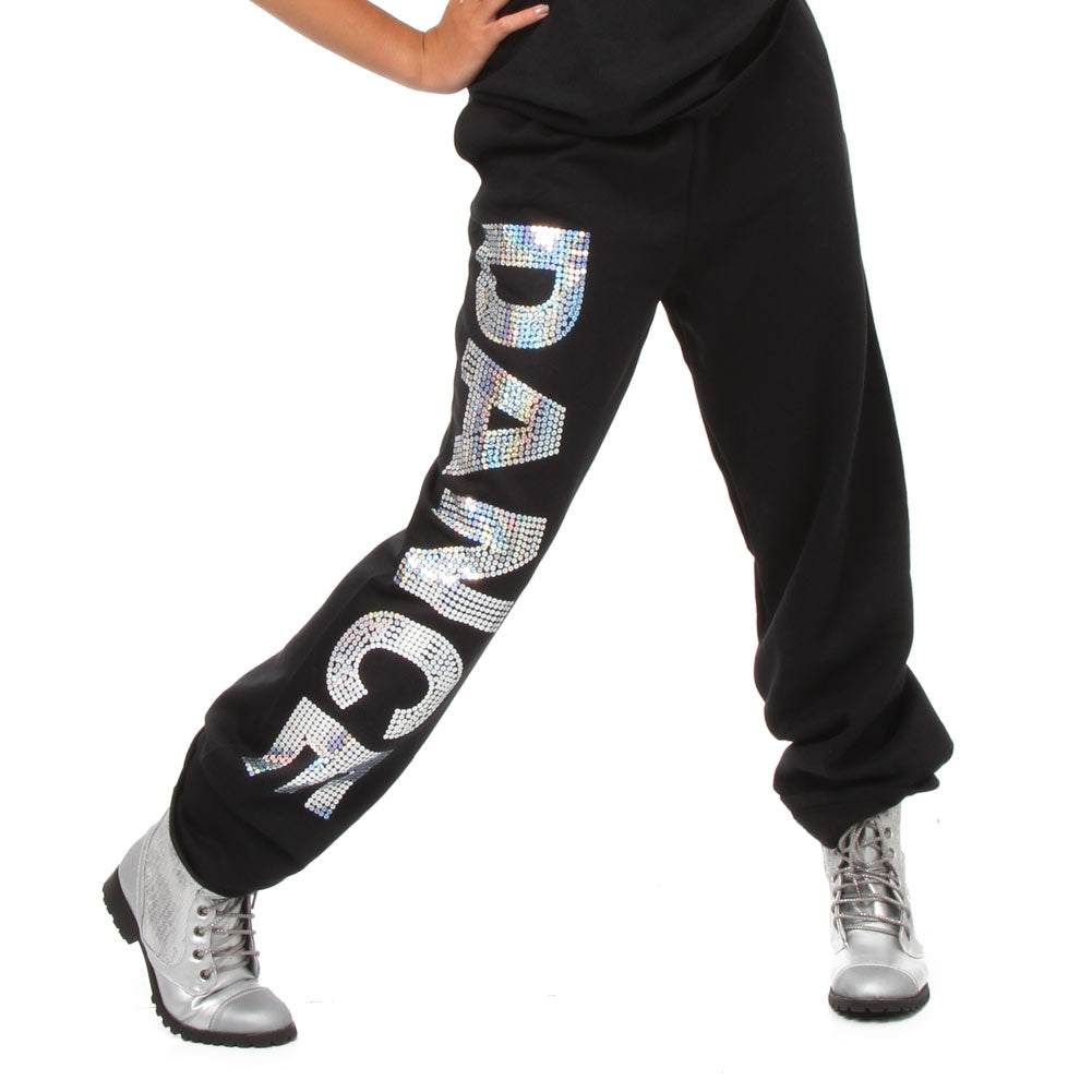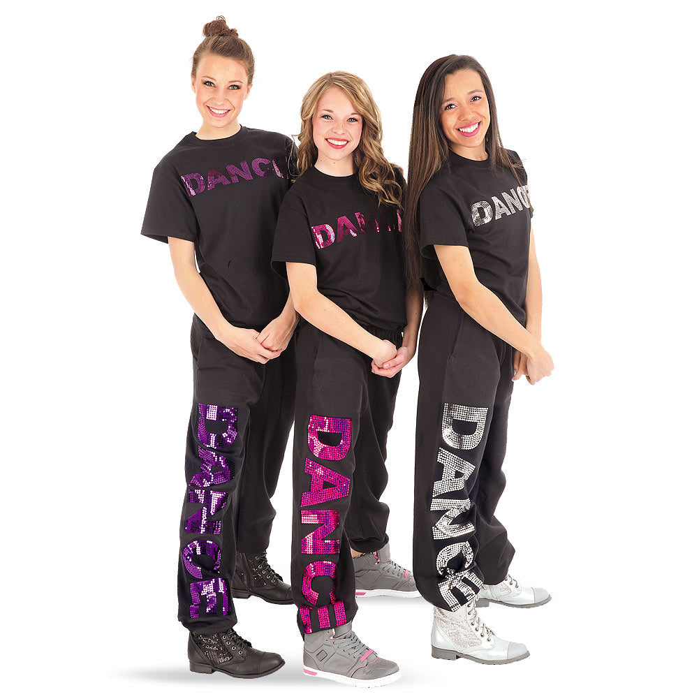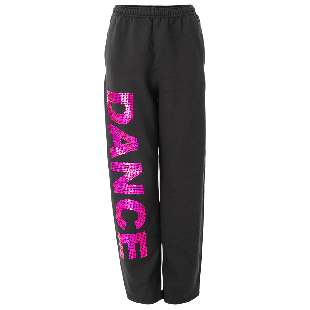 Who said "comfy" can't be GLAM!!! No one else has got 'em! Be stunning in these black sweats featuring purple, pink or silver sequins. Unisex adult sizes feature, pockets and open bottom hem. Fabric: Cotton, Polyester.