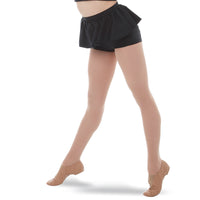 High waist peplum dance short is made of shiny black tricot. Wear to dance class or for performance. Made in the USA.Ā