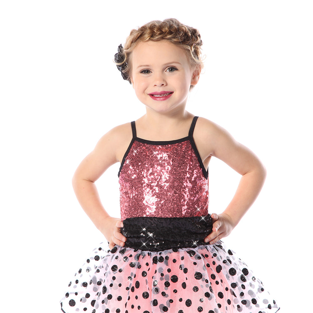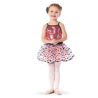 Let your heart sing in the haltered sequin Let Your Heart Sing Skirted Leotard! The glitter polka dot skirt features a black single strand sequin trim hem. Binding around the neckline and armhole for ultra comfort. The waistline is finished with an asymmetrical gathered belt. Fully lined, Adjustable straps. Nylon, Spandex.