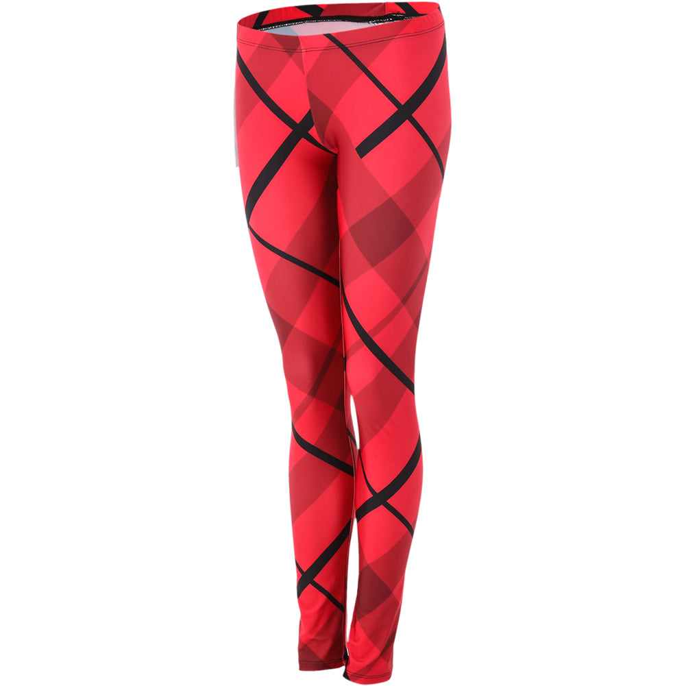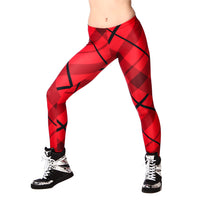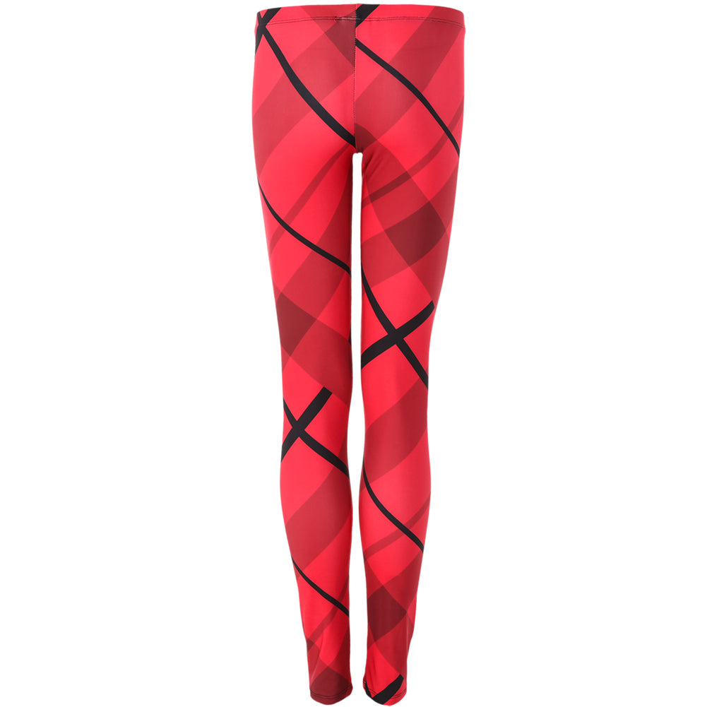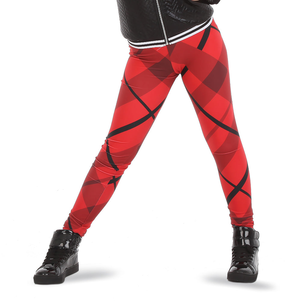 Alexandra. Wreck the stage in these eye popping red plaid leggings. Perfect for hip-hop, jazz or let's be real everyday life! Comfortable elastic waist, printed with a dye sublimated design. Polyester, Spandex.