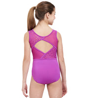 Hit the dance or gymnastics floor in this Capezio leotard that features a crisscross mesh back and keyhole design. Butterfly foil pattern on the mesh insets gives the leotard a fun look. Scoop neck. 90% Polyester, 10% Spandex Body with 84% Polyester, 16% Spandex Mesh.