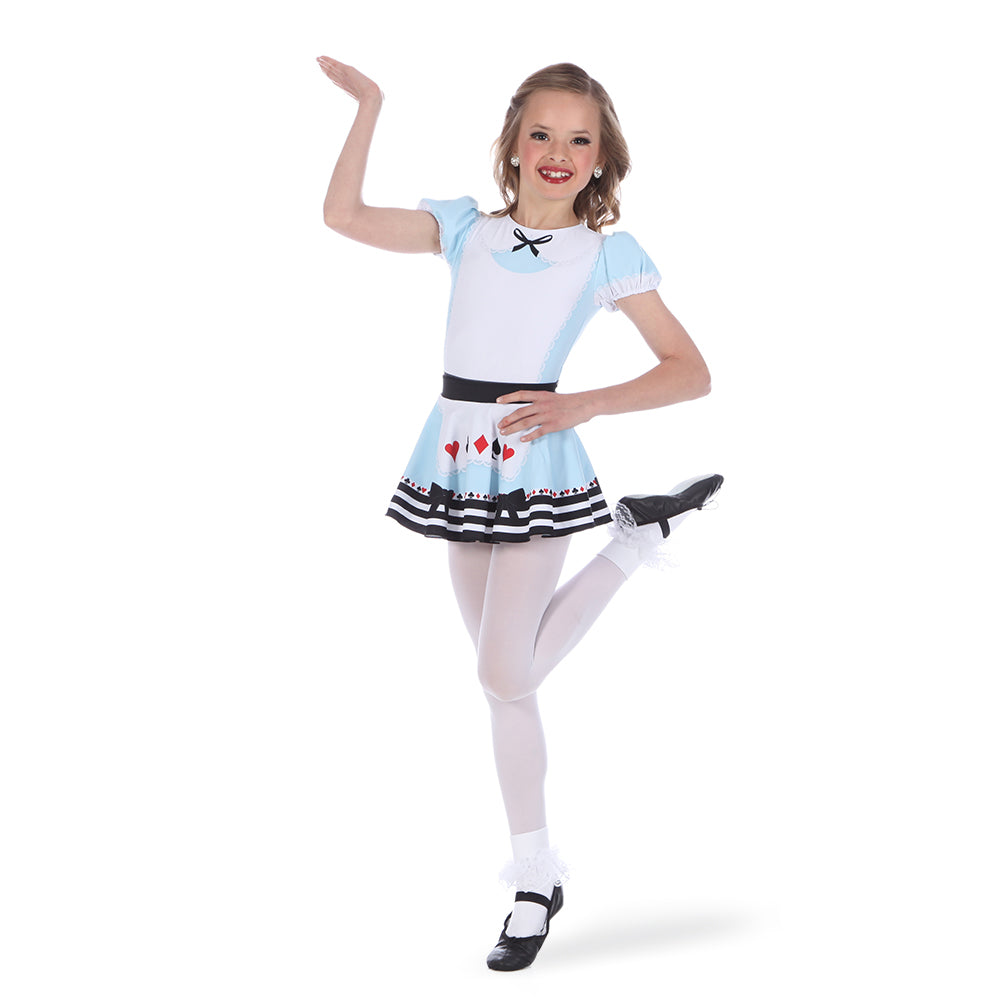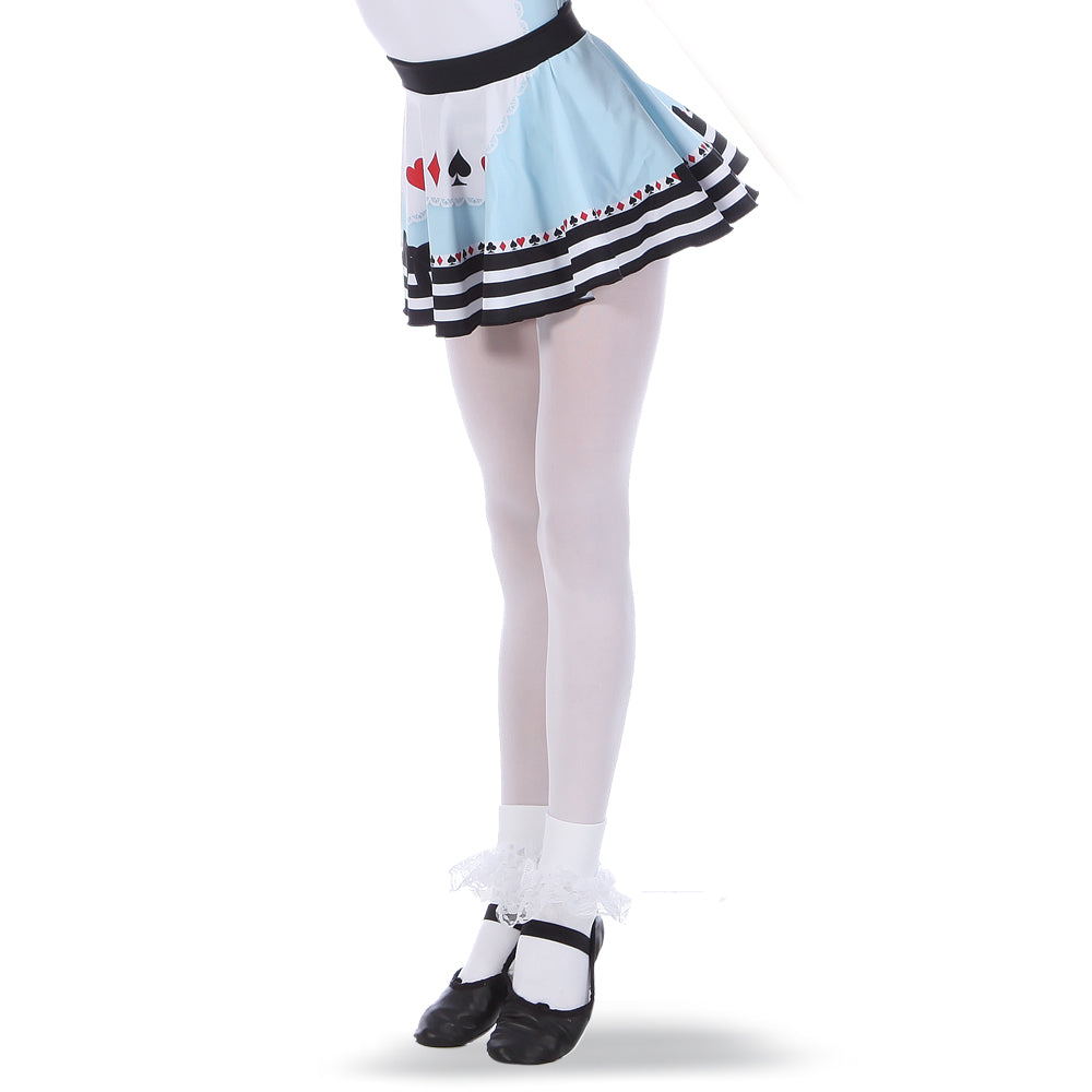 Add the Wonderful Alice Skirt to any of our pieces from our collection for the ultimate themed look. This dye-sublimated skirt features a realistic apron with detail lace, bows, different suit graphics, black and white stripes. Enclosed elastic waistband. Polyester, Spandex.