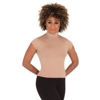 Body Wrappers Youth Cap Sleeve Hi-Neck Pullover has triangle shape open upper back and MicroTECH™: microfiber polyester/spandex construction.