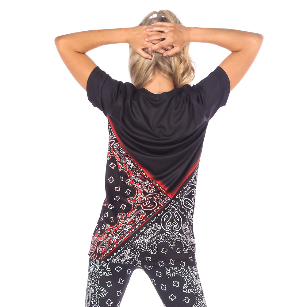 Show off your flair and urban street style in this tee which pairs nicely with Make Some Noise bottoms. Loud red and black paisley short sleeve tee. Flex Fiber Mesh construction to move with you, and vibrant, detailed dye-sublimated graphics that will never peel or crack!