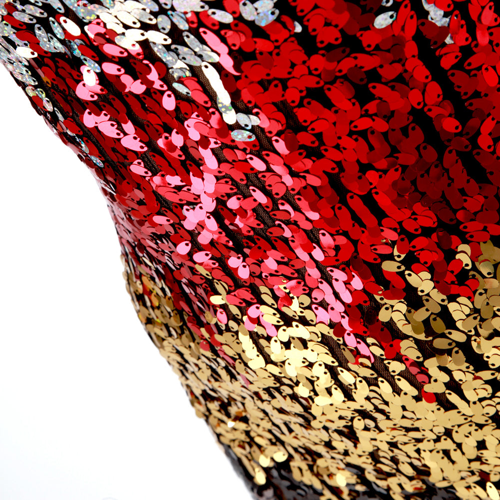 The Alexandra Sequin Asymmetrical Top is a one shoulder ombre sequined tunic dance costume top, making it a show stopping piece for your next dance performance. Solid lycra back. Polyester, Lycra.