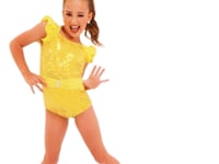 Be fancy and add extra glam to your next routine. The striking vibrant sequin color of the leotard, with the gathered waistband is accented with a rhinestone trim pull this leotard together. The gorgeous ruffle sleeves add just the right amount of drama. The back has a lined mesh panel. Centerback zipper closure. Binding along the leg opening for comfort.
