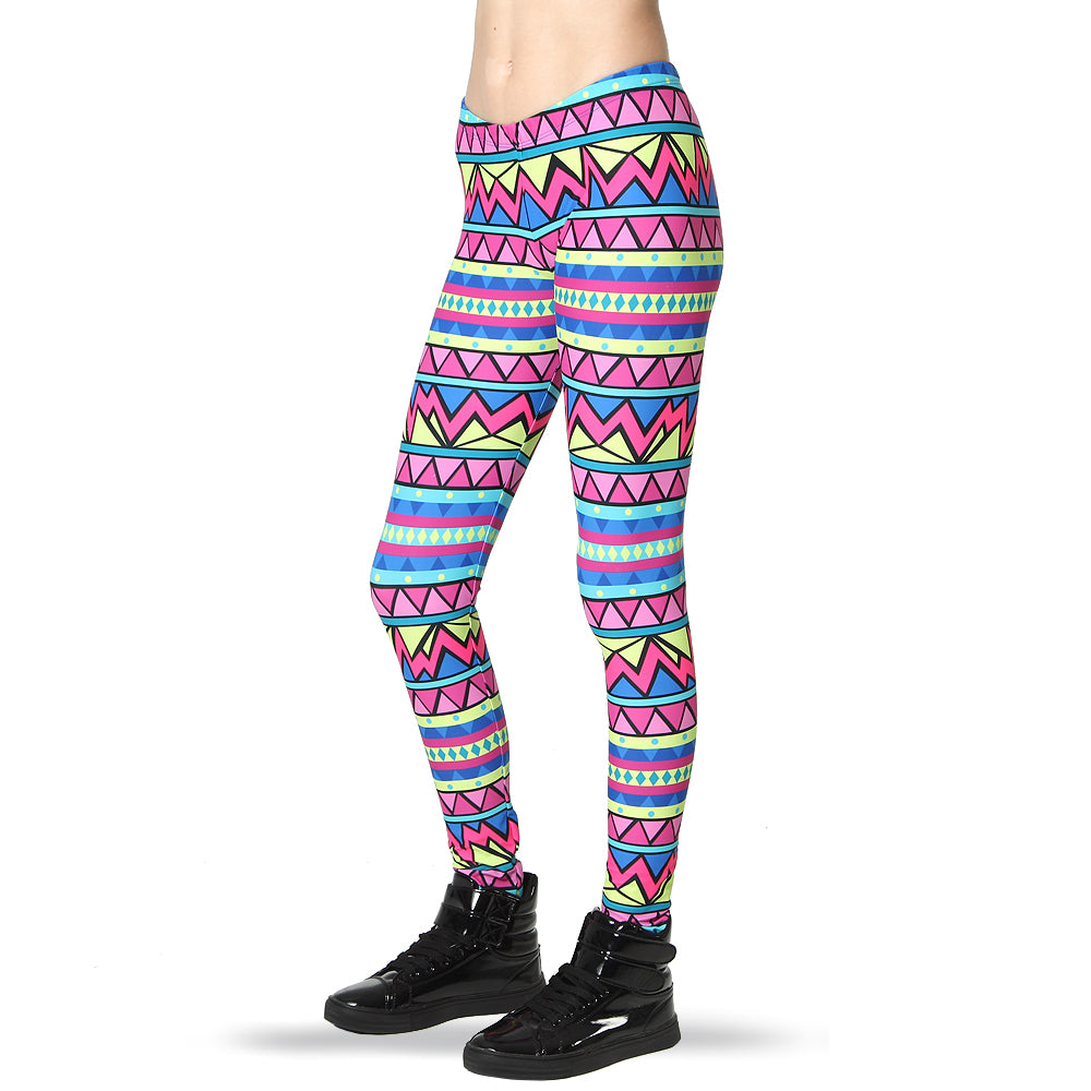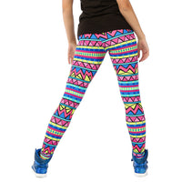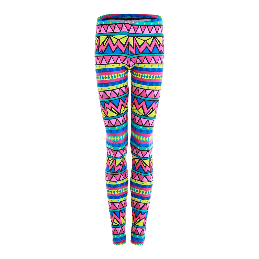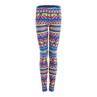 The colorful geometric zig-zag print Totally Rad dance leggings with pops of neon color from the Alexandra Collection will have you ready for your next performance. Elastic waistband. Polyester, Spandex.