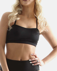 Black bandeau dance bra can be paired with shorts, leggings or under a cute dance top. Added support. Stretch fabric. Designed in London.