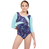Jungle Lights Long Sleeve Leotard is a great dance or gymnastics leotard. Features a classic scoop front and back. Fully front lined with a ballet legline.